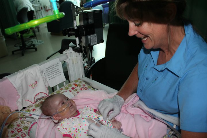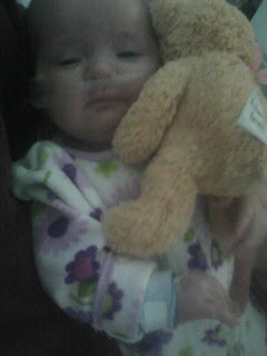 After four difficult hours, Dr Downey --himself, not a younger assistant as we'd seen the other families in the waiting room receive visits from-- came to our chairs with a tired face, and must have talked with us for twenty minutes. What he initially had wanted to tell us with the phone call was this: there had been no change since the esophagram a month ago, so there was no advantage to waiting further. When he got in there, he found that there was scar tissue from her earlier surgery to contend with, which he had had to cut out before working with the healthy stuff, so in fact the esophagus was even shorter and less flexible. He believes that the scar tissue from the previous surgery was interfering with the lengthening of her esophagus. When they opened her ribs at the best angle to reach things, the rib that had had a hairline fracture from the first surgery, split apart entirely. In an attempt to prevent the unwanted fusing of the bone tissue in the healing process, great care and a lot of time was taken to align that rib in a way that would help it heal the way the surgeon wanted. He said they would be watching it throughout the next few years because it could cause some Scoliosis, and that if that started to happen they could help it by surgically resetting the bone at that point. Because this was Audrey’s second surgery, some technicalities of that meant they had to deflate a lung and work in the lung space. The pull was so tight, that he wasn't sure they could get the ends together, but he was a little surprised and very pleased that when they attempted it, none of the sutures pulled out. Because of this she did not need a gastric pull-up, and we were all relieved because we had been hoping to avoid that. He explained that the repair was very tight and that he would “sandbag” her to keep her head immobilized. She will be paralyzed and heavily sedated for 5 days. Afterwards, she will not be paralyzed and will have the head restraints removed, but will remain sedated for 5 more days. At 10 days they will do a contrast study and xray across the repair site to make sure it doesn’t have any leaks. If there are leaks they will simply keep waiting until the repair is sealed. Because her stomach was pulled unnaturally tight, it will reflux a great deal. He also explained that the proximal pouch (the upper end) is very large and the distal pouch is stretched and narrow, so the two together act a bit like a funnel with food draining down slowly after swallowing. They can stretch (dilate) the esophagus easily as needed at a later date with a balloon similar to an angioplasty, but in the meantime Audrey will learn to adapt to the tiny opening, and although learning to swallow food will be slow going it will be enough for her own saliva. At the end Dr. Downey seemed optimistic about the repair. He noted what a strong baby she is-- they usually have to stop and take breaks to allow the baby's oxygen to catch up, when the baby is functioning with only one lung, but to his amazement that never happened with Audrey. He seemed very tired like one who had finished a long race, and as we warmly thanked him he seemed to drink it in like one who thirsts. Justin wrote these thoughts: "Dr. Downey’s demeanor was similar to someone who has had a spiritual encounter and I wonder if he felt some divine intervention in Audrey’s behalf. He also seemed very warm towards us when we said good-bye. Just before the surgery Susie posted the information in her Facebook page and many of our family members and close friends stopped what they were doing to pray for her. Justin's Uncle Bob and Aunt Brooke pulled over to the side of the road to pray, Carolyn Rowberry interrupted breakfast to pray as a family. We feel that these prayers were the reason Audrey had such a successfully surgery.